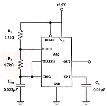 다음 555타이머 회로의 출력 발진 주파수는 약 몇 kHz인가?