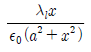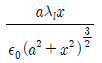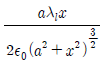진공 중에 균일하게 대전된 반지름 a(m)인 선전하 밀도 λl(C/m)의 원환이 있을 때, 그 중심으로부터 중심축상 x(m)의 거리에 있는 점의 전계의 세기는 몇 V/m 인가?