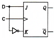 다음의 회로에서 입력 값이 D=1, C=1(positive edge trigger)일 경우 출력 Q의 상태 값은?