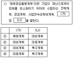 「재해경감을 위한 기업의 자율활동 지원에 관한 법률」상 용어의 정의로 (가), (나)에 들어갈 내용을 바르게 나열한 것은?
