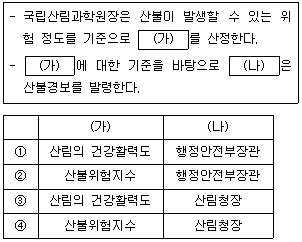 「산림보호법 시행령」상 산불경보의 발령기준으로 (가), (나)에 들어갈 내용을 바르게 연결한 것은?