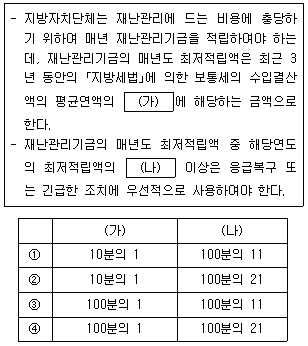「재난 및 안전관리 기본법」상 재난관리기금에 대한 설명으로 (가), (나)에 들어갈 내용을 바르게 연결한 것은?