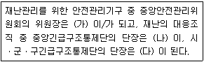 「재난 및 안전관리 기본법」상 안전관리기구 및 재난의 대응조직에 대해 (가)~(다)에 들어갈 내용을 바르게 연결한 것은?