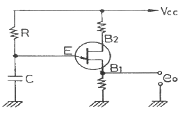 다음 회로와 같은 단일접합트랜스지스터(UJT)를 사용한 펄스발생회로의 출력파형은 어떻게 나타나는가?