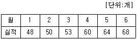다음 [표]를 참조하여 5개월 단순이동평균법으로 7월의 수요를 예측하면 몇 개인가?