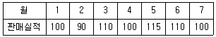 다음과 같은 [데이터]에서 5개월 이동평균법에 의하여 8월의 수요를 예측한 값은 얼마인가?