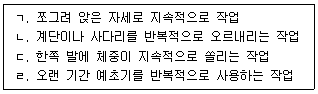 다음의 작업 사례 중 근골격계질환이 발생할 수 있는 사례를 모두 고른 것은?