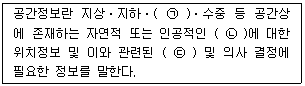 국가공간정보 기본법에서는 다음과 같이 공간정보를 정의하고 있다. ㉠, ㉡, ㉢에 들어갈 용어가 모두 올바르게 나열된 것은?
