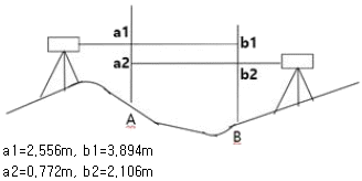 교호수준측량을 실시하여 다음 결과를 얻었다. A점의 표고가 56.674m일 때 B점의 표고는?