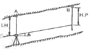 경사 터널 내 고저차를 구하기 위해 그림과 같이 고저각 a, 경사거리 L을 측정하여 다음과 같은 결과를 얻었다. A, B간의 고저차는? (단, LH=1.15m, H.P=1.56m, L=31.00m, a=+30°)
