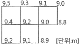 그림과 같은 지역에 정지작업을 하엿을 때, 절토량과 성토량이 같아지는 지반고는? (단, 각 구역의 크기(4m×4m)는 동일하다.)