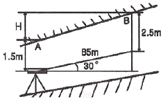 그림과 같이 측정 A의 밑에 기계를 세워 천장에 설치된 측점 A,B 를 관측하였을 때 두정의 높이차(H)는?