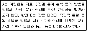 사회⋅문화 현상을 연구하는 방법 A, B에 대한 설명으로 옳은 것은?