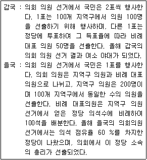 갑국과 을국의 선거 제도의 일반적 특징에 대한 설명으로 옳지 않은 것은?