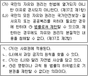 헌법 조항 (가), (나)에 대해 옳은 설명만을 <보기>에서 모두 고른 것은?