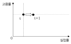 다음 그림은 갑국의 고용률과 실업률을 나타낸 것이다. t시기에서 t+1시기로의 변화에 대한 분석으로 옳은 것은? (단, 갑국의 15세 이상 인구는 변함이 없다.)