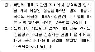 다음 법치주의를 보는 갑, 을의 관점에 대한 설명으로 옳은 것은?