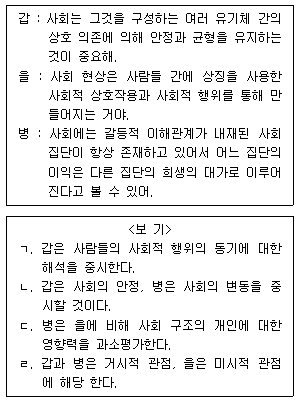 갑∼병이 사회·문화 현상을 보는 관점의 일반적인 특징에 대한 옳은 설명을 <보기>에서 고른 것은?