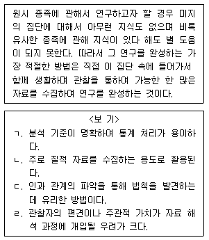 다음 자료 수집 방법이 갖는 일반적인 특징에 대한 옳은 설명을 <보기>에서 고른 것은?