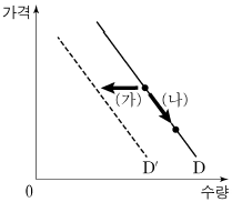 그림은 X재 수요의 변동과 수요량의 변동을 나타낸 것이다. 이에 대한 설명으로 옳은 것은?