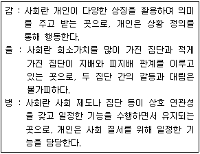 사회·문화 현상을 바라보는 갑, 을, 병의 관점에 대한 설명으로 옳은 것은?