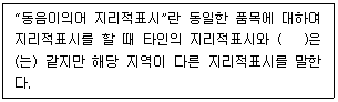 농수산물 품질관리법령상 동음이의어 지리적표시에 관한 정의이다. ( )에 들어갈 내용으로 옳은 것은?