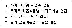 원예작물별 생리장해의 원인으로 옳은 것을 모두 고른 것은?