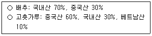 농수산물의 원산지 표시 등에 관한 법령상 A일반음식점이 배추김치를 아래의 원료를 사용하여 원산지 표시를 하는 경우 그 표시방법으로 옳은 것은?