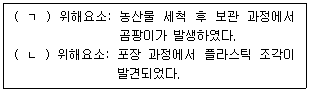 농산물 세척 및 포장 과정에서 발생한 원예산물 위해요소이다. ( )에 들어갈 내용으로 옳은 것은?