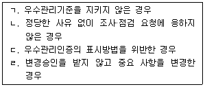 농수산물 품질관리법령상 우수관리인증의 취소 및 표시정지에 해당하는 위반사항이다. 최근 1년간 같은 행위로 3차 위반 시 ‘인증취소’행정처분을 받는 경우를 모두 고른 것은? (단, 경감 및 가증사유는 고려하지 않음)