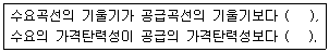 거미집이론에서 균형가격에 수렴하는 조건에 관한 내용이다. ( )에 들어갈 내용을 순서대로 나열한 것은?
