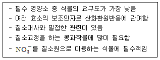 식물의 필수양분 중 다음 특성을 갖는 것은?