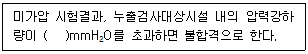 저장물질이 있는 누출검사대상시설-기상부의 시험법 중 미가압 시험의 판정기준에 관한 설명으로 빈 칸에 들어갈 값으로 옳은 것은?