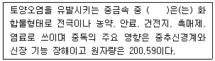 중금속에 관한 설명으로 ( )에 알맞은 것은?