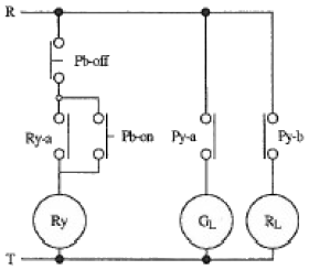 다음 시퀀스제어 회로도의 동작설명으로 옳은 것은? (단, GL은 녹색램프이고, RL은 적색램프이다)