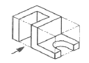 다음과 같은 입체도에서 화살표 방향이 정면도 방향일 경우 올바르게 투상된 평면도는?