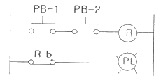 그림의 시퀀스 회로에 언급된 논리 게이트는? (단, 입력은 PB-1, PB-2 출력은 PL 램프이다.)