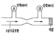 다음 그림은 오리피스 효과를 나타낸 것이다. 압력에 대한 설명 중 맞는 것은?
