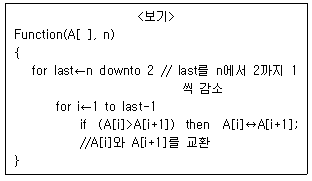 <보기>의 배열 A에 n개의 원소가 있다고 가정하자. 다음 의사코드에 대한 설명으로 가장 옳지 않은 것은?