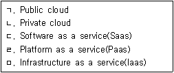 <보기> 중 우리가 흔히 인터넷을 통해 비용을 지불하거나 혹은 무료로 사용하는, 클라우드 저장 서버에 대한 분류로 옳은 것을 모두 고르면?