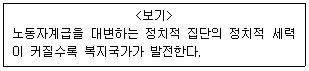 복지국가의 발달을 설명하는 이론 중 <보기>의 주장과 가장 밀접한 이론은?