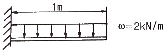 아래 그림과 같은 균일분포 하중 ω를 받는 외팔보의 최대굽힘모멘트는 몇 kN·m 인가?