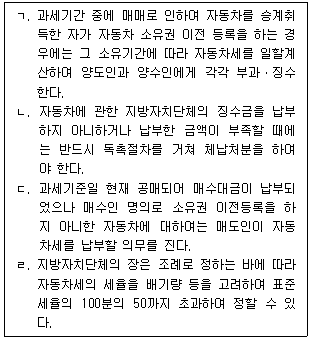 「지방세법」상 '자동차 소유에 대한 자동차세'에 대한 설명으로 옳은 것만을 모두 고르면? (단, 「지방세법」 제130조(수시부과 시의 세액계산), 비과세, 면세 등 지방세 특례는 고려하지 않는다)