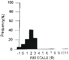 다음 그림은 어떤 저질의 입도분포를 나타낸 히스토그램 이다. 이 퇴적물을 구성하고 있는 퇴적물의 형태는?
