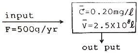 아래의 Box model로부터 어떤 물질이 해양에 들어 와서 제거될 때까지의 시간(T)를 구하면?