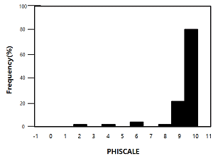 어떤 해저퇴적물의 입도분포 히스토그램에 관한 다음 설명 중 틀린 것은?