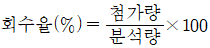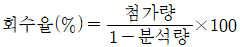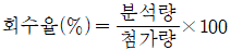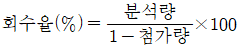 회수율 실험은 여과지를 이용하여 채취한 금속을 분석한 것을 보정하는 실험이다. 다음 중 회수율을 구하는 식은?