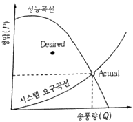 그림과 같은 송풍기 성능곡선에 대한 설명으로 맞는 것은?
