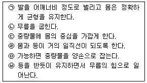 다음의 중량물 들기 작업의 구분 동작을 순서대로 나열한 것은?