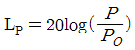 소음의 음압수준(LP)를 구하는 식은?(단, P: 음압, PO: 기준 음압)